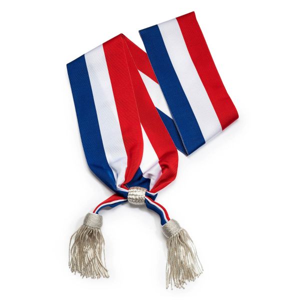 Ce collier destiné aux Maires-Adjoints est suspendu à un ruban cousu main aux couleurs de notre nation "Bleu Blanc Rouge". La médaille en bronze argentée représente le profil de Marianne.