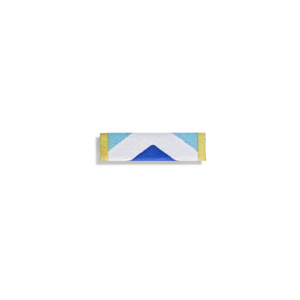 La dixmude de l'engagement ultramarin - échelon bronze est de couleur blanc comportant des chevrons bleu indigo et bleu outre-mer. Elle est réalisée par les artisans Drago Paris dans ses ateliers français en accord avec le dernier décret en vigueur.