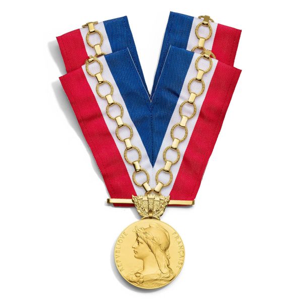 Écharpe de Maire éthique et authentique fabriquée en association avec la Maison Neyret. Du haut de ses 1,90 mètre, de ses 110 millimètres de largeur et de ses franges couleur or, elle arbore les couleurs de notre nation "bleu, blanc, rouge". Vendue dans un coffret prestige.