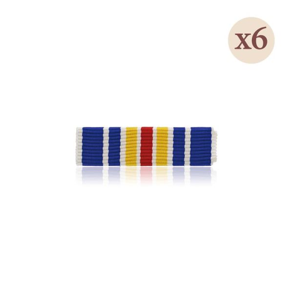 Cette médaille en bronze doré est constituée d'une étoile émaillée de rouge entourée par une couronne de laurier et de chêne. Il est suspendu à un ruban composé d'une bande de couleur jaune au centre séparée par des liserés rouge et blanc, ainsi que deux bandes bleues séparée par des raies blanches aux extrémités.