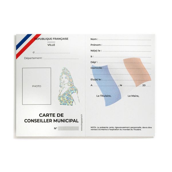Les lettres "RF" et "Conseiller Municipal" apportent une signature distinctive.