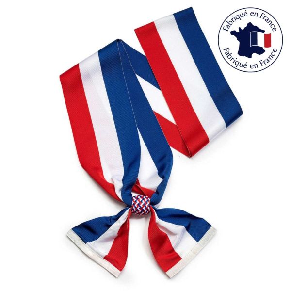Spécialement conçu pour les élus locaux, cet insigne de 42 mm présente une couronne de chêne et de laurier entourant une cocarde tricolore.