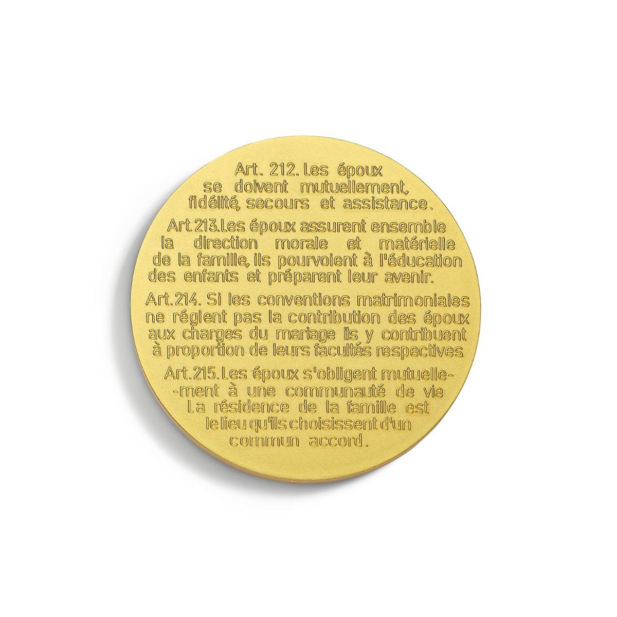 Au revers, on y retrouve les articles de loi lus pendant la cérémonie à la mairie.