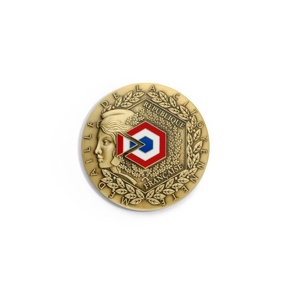 Affirmez votre engagement avec la Médaille "Marianne Républicaine" Delannoy. D'un diamètre de 65 mm, cette médaille ronde en bronze patiné met en scène une Marianne emblématique, parée de son bonnet phrygien, de sa cocarde et de feuilles de chêne, évoquant la force, l'engagement et les valeurs républicaines. C'est un objet chargé de sens pour célébrer les vertus civiques et l'histoire de la France. Et pour la rendre encore plus spéciale, le revers de la médaille peut être personnalisé avec une gravure.