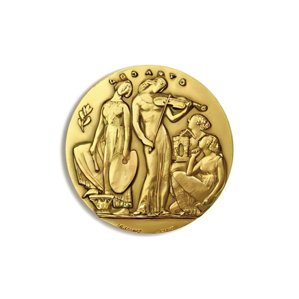 Cette médaille en bronze patiné de 80 mm de diamètre célèbre le secteur de l’art et la musique.