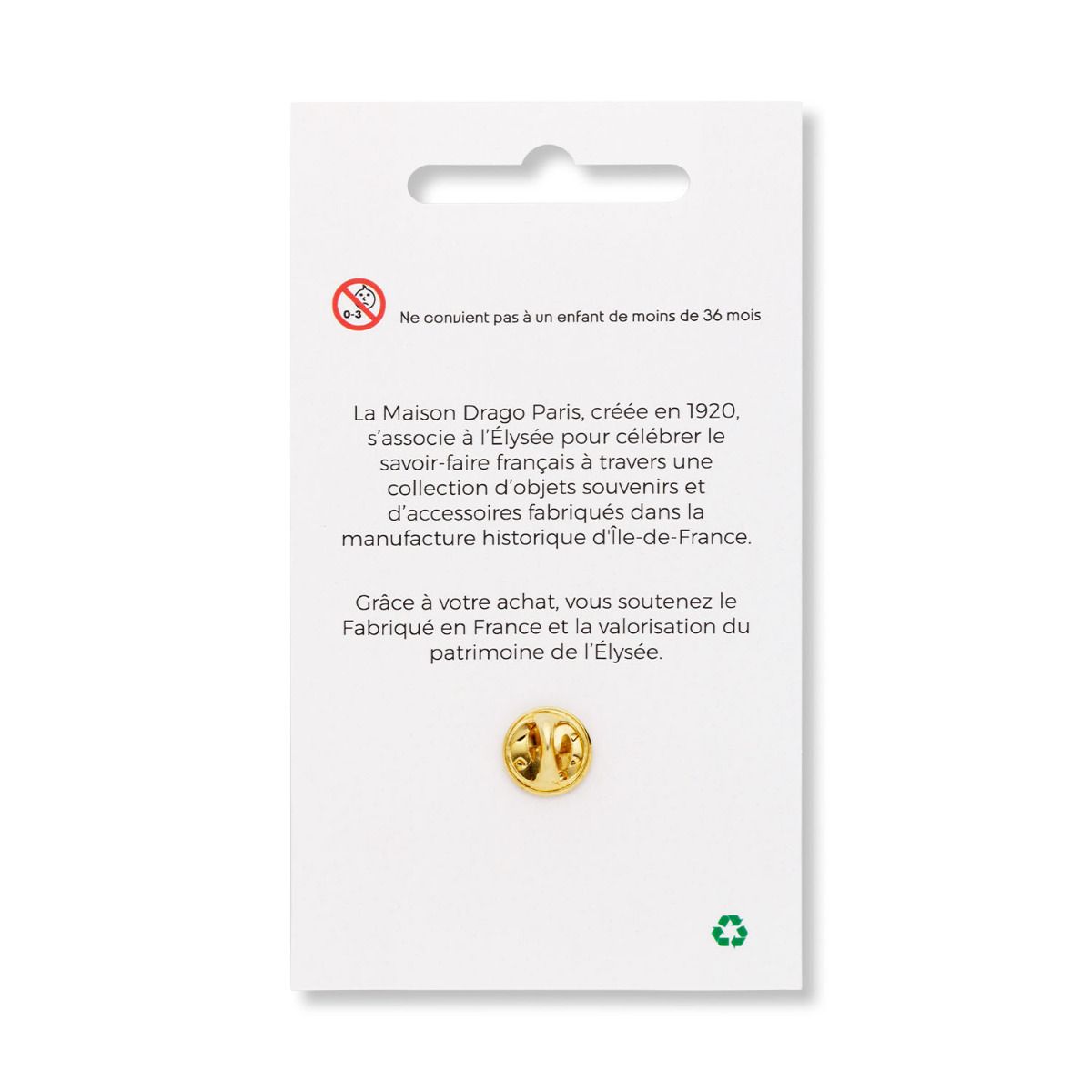 Découvrez notre assortiment exclusif de pin's, fruit d'une collaboration d'exception entre l'Élysée et la Maison Drago Paris.