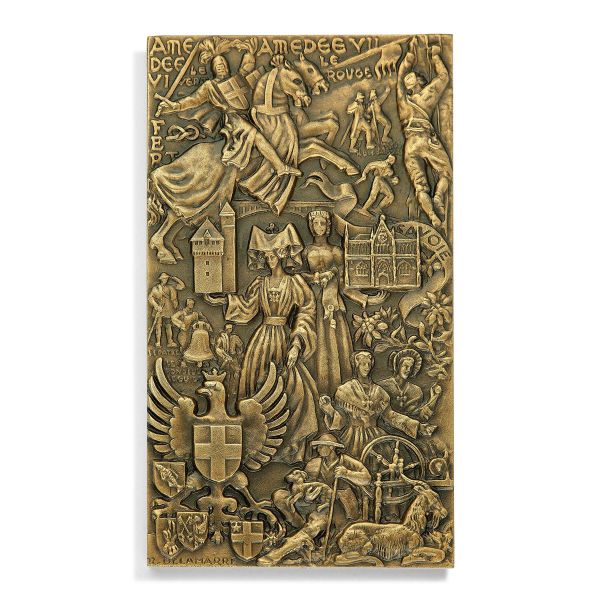 Découvrez la plaque de la région Touraine, de dimensions 52 x 90 mm en bronze argenté, signée Delamarre.
