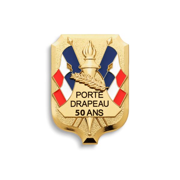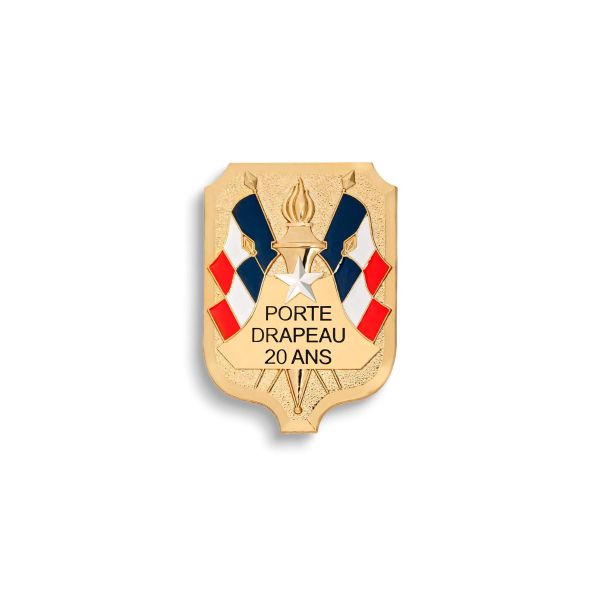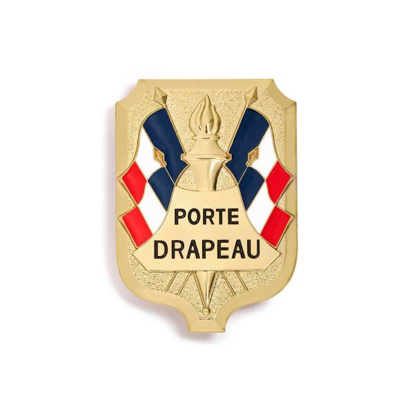 Sur cet insigne sont représentés une cloche et quatre drapeaux français, ainsi qu'une palme argentée. Une torche forme le haut de la cloche, tandis que sur le corps de cette dernière l'inscription "Porte Drapeau 30 ans" apparaît. Cet insigne sur broche mesure 55 millimètres de hauteur et 40 millimètres de largeur.