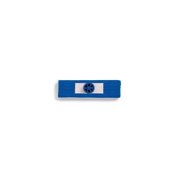 La rosette est de couleur "Bleue de France". Elle est cousue sur un galon blanc en tissu d'une longueur de 15 millimètres et d'une largeur de 5 millimètres. Le diamètre de la rosette est de 6,50 millimètres. La fixation est sous forme de pin's. La rosette est de couleur "Bleue de France". Elle est cousue sur un galon blanc en tissu d'une longueur de 15 millimètres et d'une largeur de 5 millimètres. Le diamètre de la rosette est de 6,50 millimètres. La fixation est sous forme de pin's.